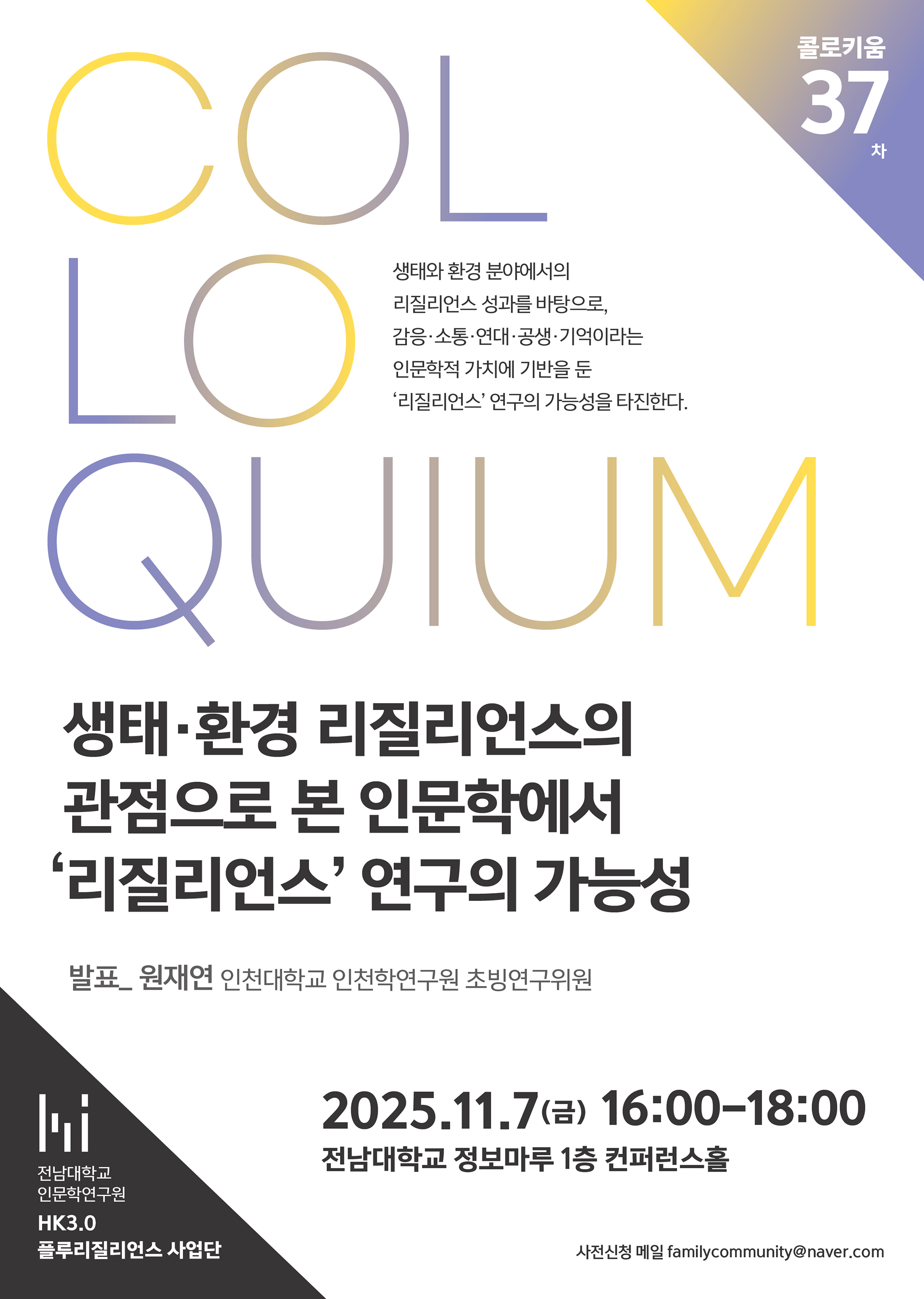 [행사] 제37차 콜로키움 : 생태·환경 리질리언스의 관점에서 본 인문학에서 '리질리언스' 연구의 가능성
