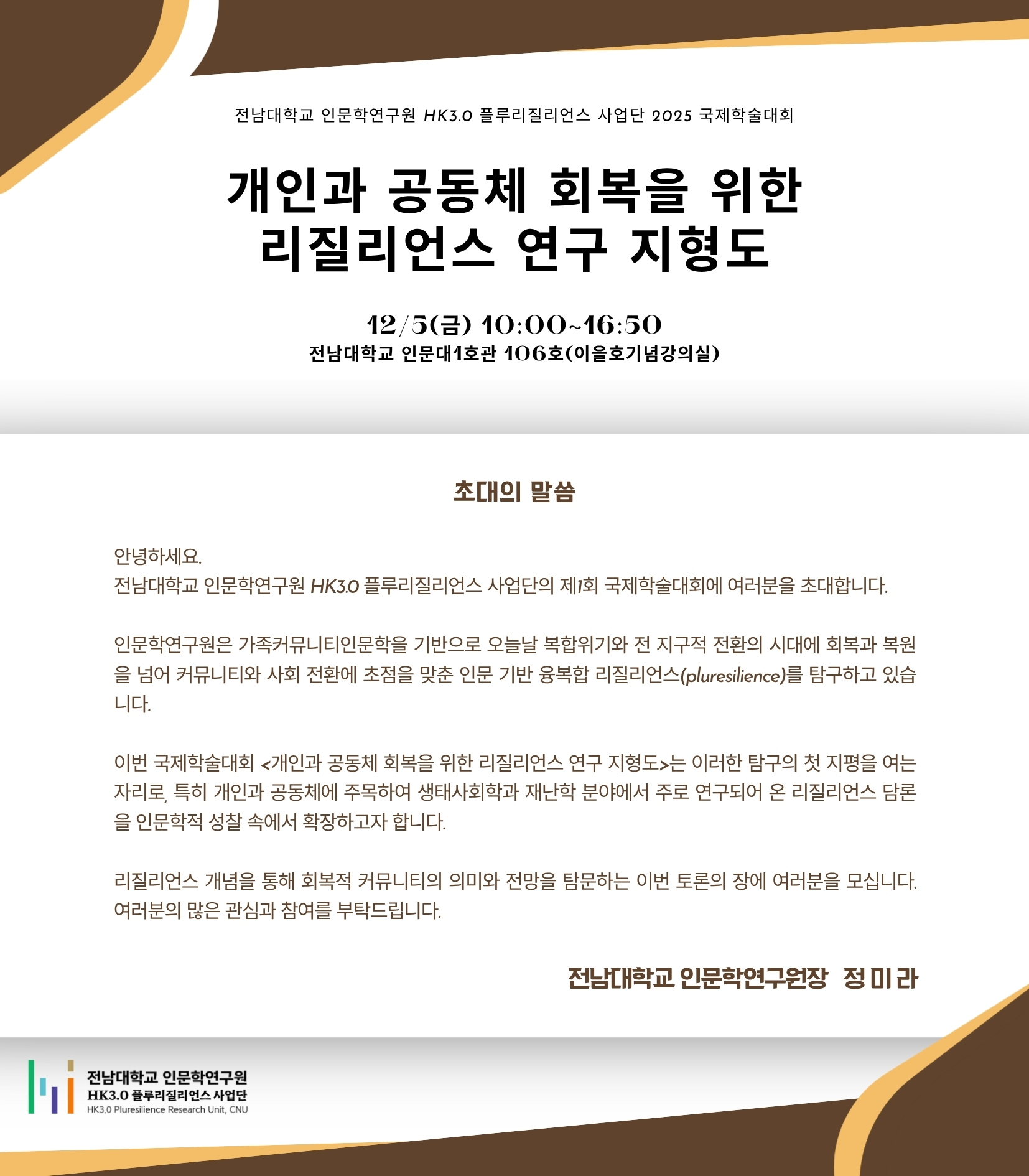 □ 장소 : 전남대학교 인문대 1호관 106호 이을호기념강의실 (대면)